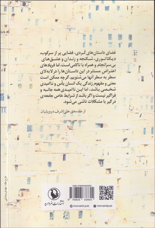 فضاي داستانهاي كردي، فضايي پر از سركوب، ديكتاتوري، شكنجه و زندان و عشقهاي بي سرانجام و همراه با ناكامي است. اما فريادهاي اعتراض مستتر در اين داستانها را در لابهلاي سطر به سطر آنها ميشنويم. گرچه ممكن است معني و مفهوم زندگي يك انسان ياس و نا اميدي همه جانبه و فراگير نيست و اگر باشد از شرايط خاص جامعه درگير با مشكلات ناشي ميشود.