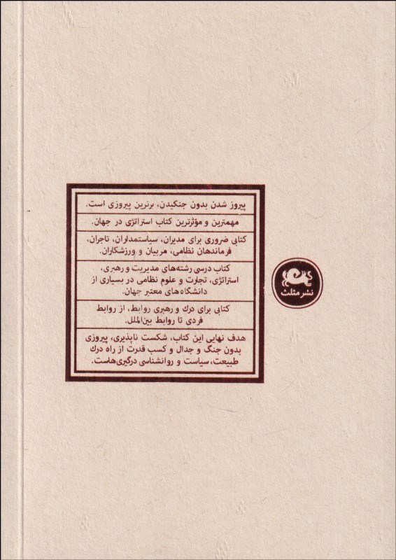 هدف نهايي اين كتاب، شكست ناپذيري، پيروزي بدون جنگ و جدال و كسب قدرت از راه درك طبيعت، سياست و روانشناسي درگيريهاست.