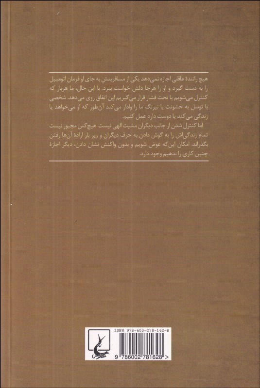 هيچ راننده عاقلي اجازه نميدهد يكي از مسافرينش به جاي او فرمان اتومبيل را به دست گيرد و او را هر جا دلش خواست ببرد. با اين حال، ما هر بار كه كنترل ميشويم يا تحت فشار قرار ميگيريم اين اتفاق روي ميدهد. شخصي با توسل به خشونت يا نيرنگ ما را وادار ميكند آن طور كه او ميخواهد يا زندگي ميكند يا دوست دارد عمل كنيم.