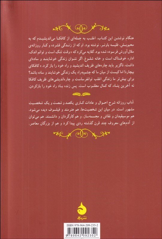 هنگام نوشتن اين كتاب، اغلب به جملهاي از كافكا ميانديشيدم كه به محبوبش، فليسه باوئر، نوشته بود. او كه از زندگي فشرده و كار روزانه ملالآورش فرسوده شده بود، گلايه ميكرد كه «وقت تنگ است و توانم اندك. اداره خوفناك است و خانه شلوغ، اگر نتوان زندگي خوشايند و سادهاي داشت، ناگزير بايد چارههاي ظريف انديشيد و راه خود را باز كرد.» كافكاي بيچاره! اما كيست از ميان ما كه چشم به راه يك زندگي خوشايند و ساده نباشد؟ براي بيشتر ما زندگي اغلب توانفرساست و چارهانديشيهاي ظريف كافكا نه آخرين پناه، كه كمال مطلوب است. پس زنده باد راه خود را بازكردن.