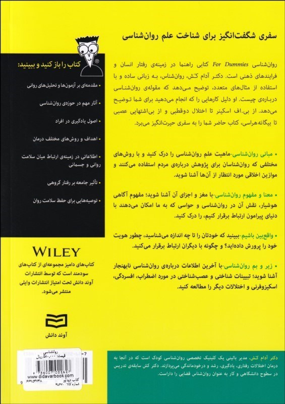 روانشناسي براي داميز كتابي راهنما در زمينه رفتار انسان و فرايندهاي ذهني است. دكتر آدام كش، روانشناس، به زباني ساده و با استفاده از مثالهاي متعدد، توضيح ميدهد كه مقوله روانشناسي درباره چيست. او دليل كارهايي را كه انجام ميدهيد براي شما توضيح ميدهد. از بي اف اسكينر تا اختلال دو قطبي و از بياشتهايي عصبي تا بيگانههراسي، كتاب حاضر شما را به سفري حيرتانگيز ميبرد.