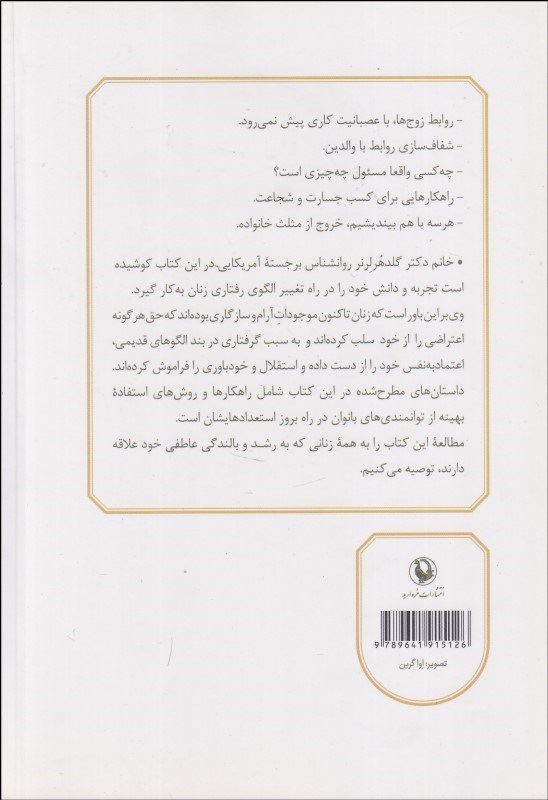 خانم دكتر «گلد هرلرنر» روانشناس برجسته آمريكايي در اين كتاب كوشيده است تجربه و دانش خود را در راه تغيير الگوي رفتاري زنان به كارگيرد. وي بر اين باور است كه زنان تاكنون موجوداتِ آرام و سازگاري بودهاند كه حق هرگونه اعتراضي را از خود سلب كردهاند و به سبب گرفتاري در بند الگوهاي قديمي، اعتماد به نفس خود را از دست داده و استقلال و خودباوري را فراموش كردهاند. داستانهاي مطرح شده در اين كتاب برخوردار از راهكارها و روشهاي استفاده بهينه از توانمنديهاي بانوان در راه بروز استعدادهايشان ميباشد.